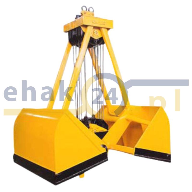 Czerpak mechaniczny CM4-1,1 dwułupinowy czterolinowy -do załadunku materiałów w stanie luźnym o gęstości nasypowej 1,1 t / m3. Idealny do wykorzystania przy transporcie nawozów, zbóż, węgla, materiałów sypkich składowanych luzem itp.