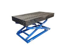 Hydrauliczny podnośnik nożycowy przeznaczony do współpracy ze stołami systemu 16, umożliwiający płynną regulację wysokości roboczej. Sterowany za pomocą pilota, pozwala na ergonomiczne dopasowanie stanowiska do aktualnych potrzeb użytkownika. Stabilna konstrukcja zapewnia bezpieczeństwo pracy, a nośność 600 kg sprawia, że urządzenie doskonale sprawdza się przy montażu i spawaniu średnich elementów konstrukcyjnych.